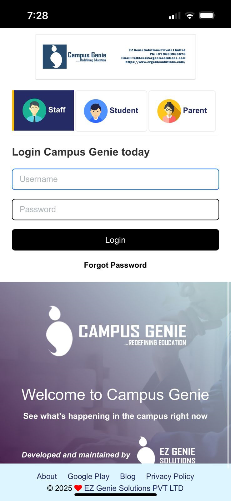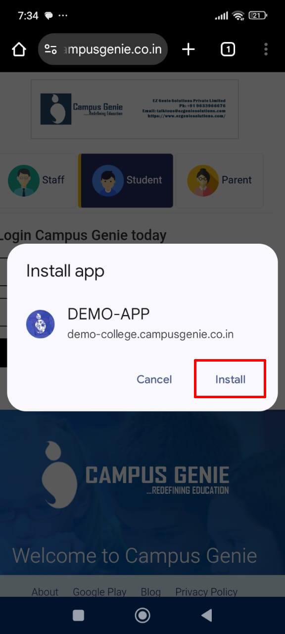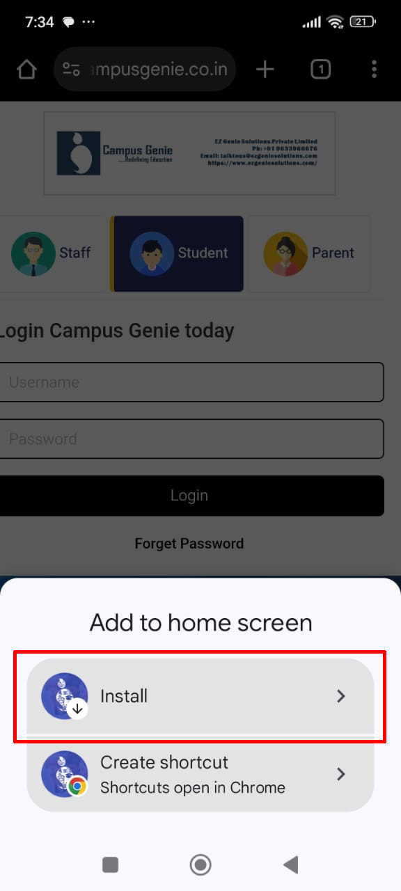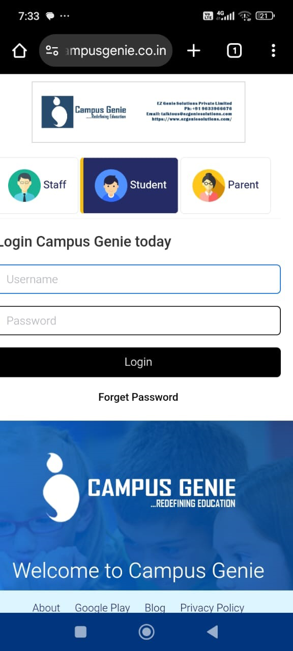 Chrome browser on your mobile and type your campus url (https://snmc.campusgenie.co.in) in the search bar